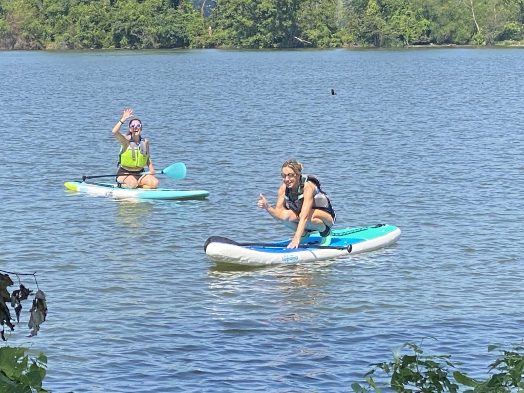Kevin & I met my friend, Nancy, at her place on the Elk River. We both had nervous energy, but we were determined. Kevin was Awesome with helping us get our boards to the water and safely in.